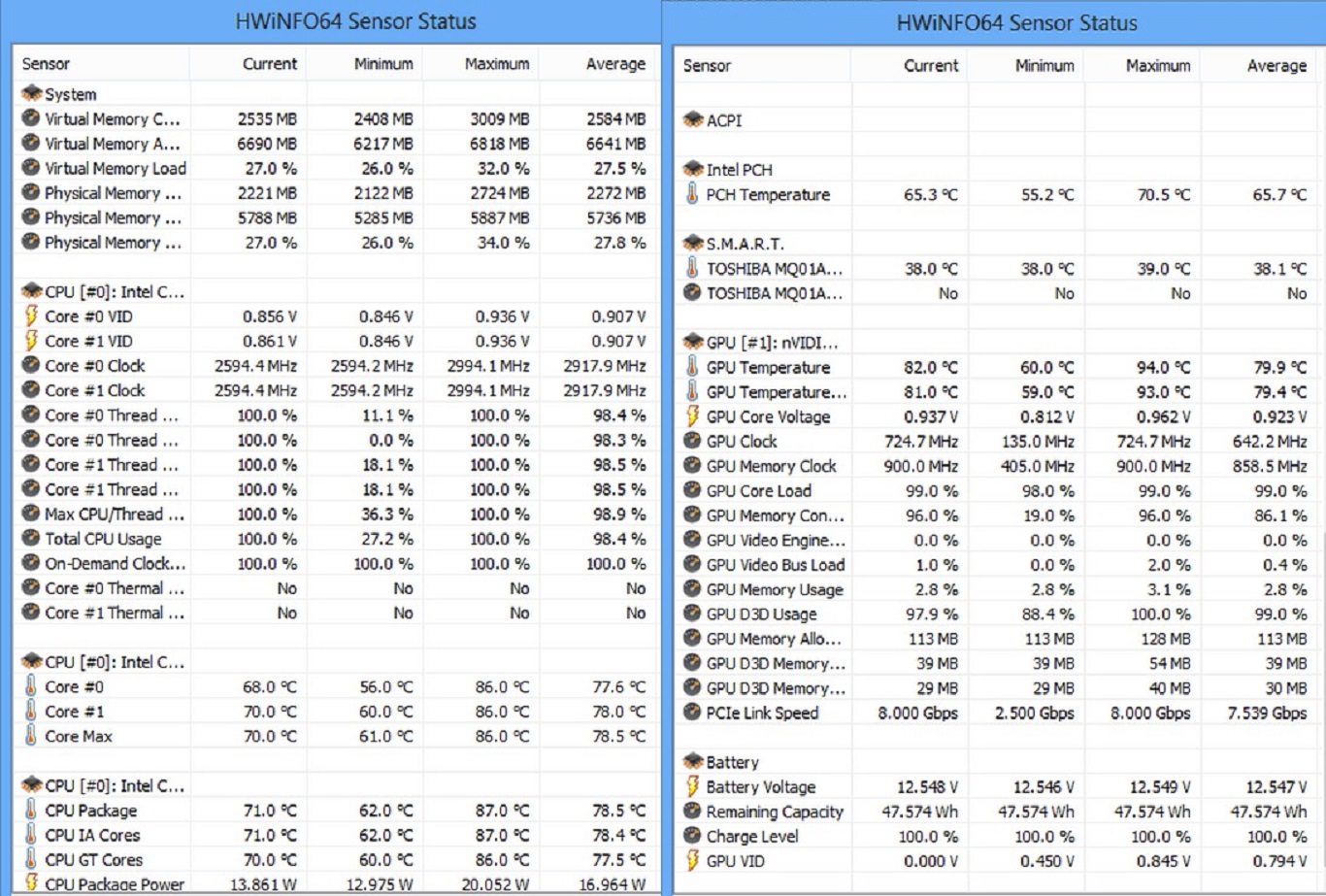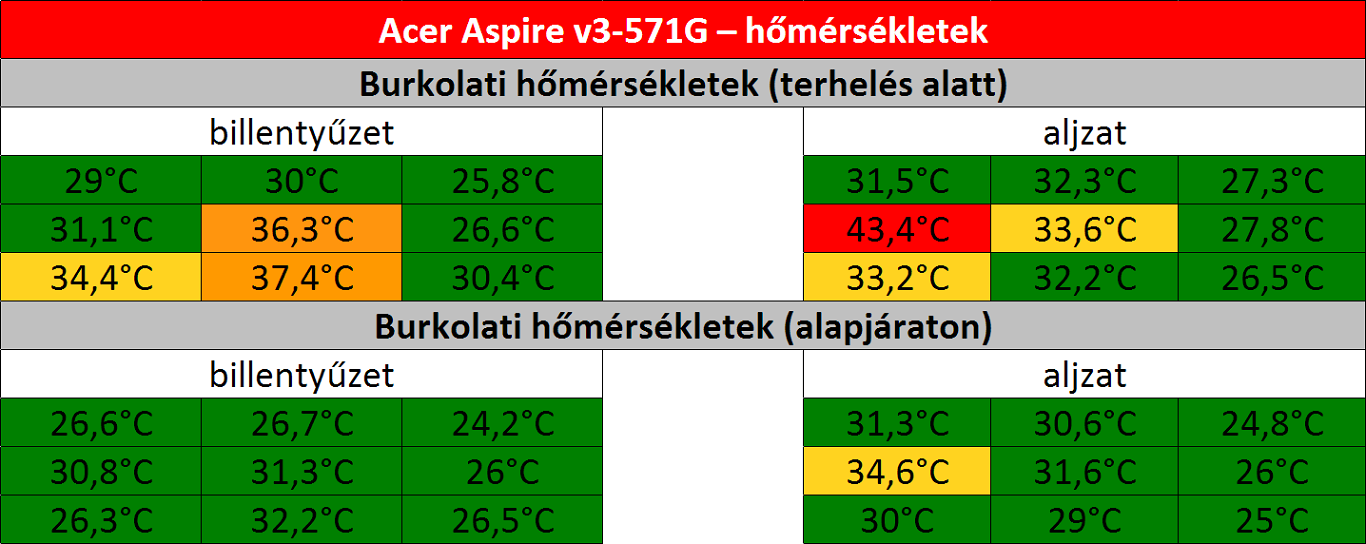 | Teljes terhelés, Furmark és Orthos futtatva, BT és WiFi bekapcsolva, 10/8-as fényerő | 1:10 perc |