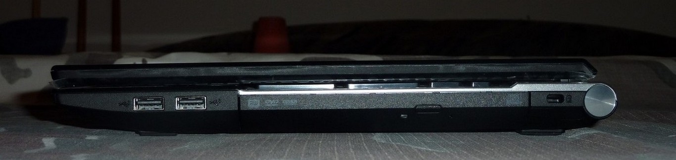 Jobb oldalon a Kensington zár nyílása, DVD író és 2 darab 2.0-ás USB található.