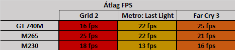 A 740M-et leváltása tehát ahogy látszik a saját eredményekből nem hozott sokat a konyhára, elég hasonló fps-ek vannak a táblázatban, több eredményt sajnos a nem egybevágó információim miatt nem tudtam feldolgozni, de amint lehet updateljük a táblázatot.