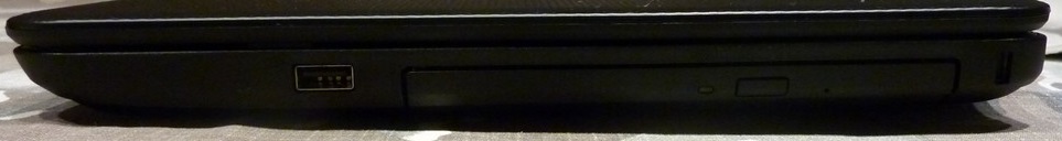 Jobb oldalon extra áramkörös USB2.0-s csatlakozót, a DVD írót és a Kensginton zár nyílását találjuk.