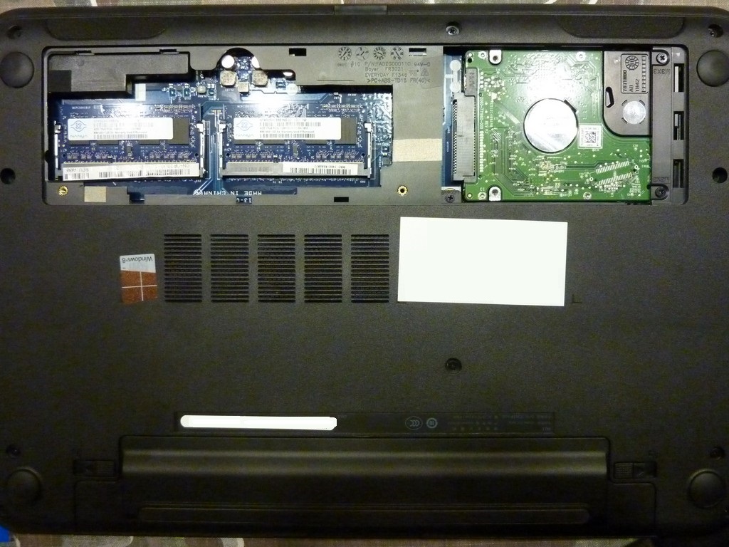 A kis szervizes nyílást 2 csavar oldásával érhetjük el, DDR3L memóriát és akár SSD bővítést is elvégezhetünk egyszerűen.