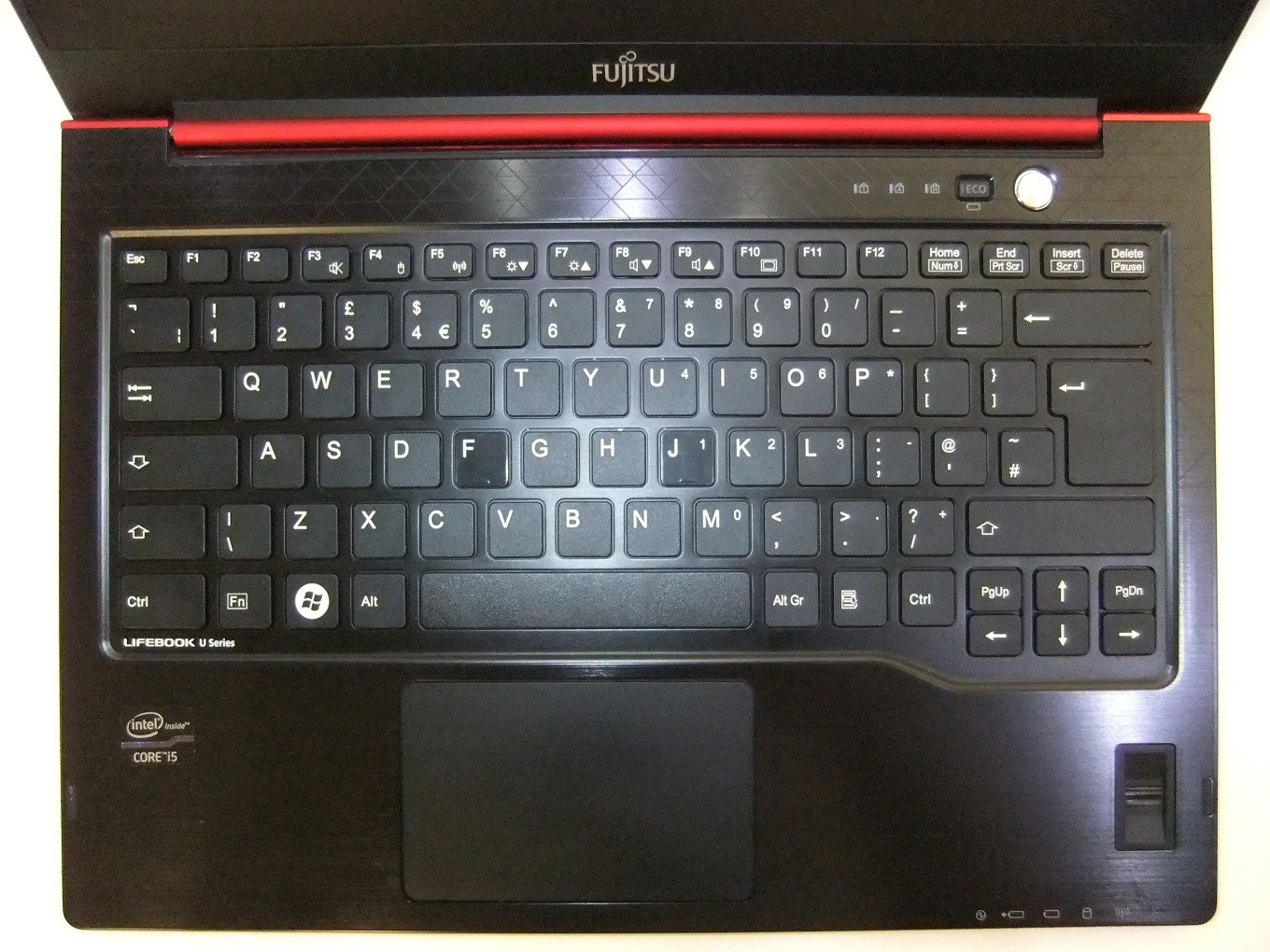 A Fujitsu Lifebook U772 Ultrabook az előírásoknak megfelelően penge vékony, pille súlyú és teljes magnéziumborítással rendelkezik. Továbbá egy ultra alacsony fogyasztású processzoral is van felvértezve. Tesztpéldányunk vörös fém köntöse alatt megint csak fém és fém található. A fekete színű, szálcsiszolt alumíniumborítású belső rész, melybe különféle vonalak vannak belegravírozva igen egyedivé teszi ezt a kis penge noteszgépet. A burkolatot körbetapogatva megállapítható, hogy nagyon minőségire sikerült a gyártó első Ultrabookja. A váz összeszerelésébe és a külső burkolat anyaghasználatába egyszerűen nem lehet belekötni.