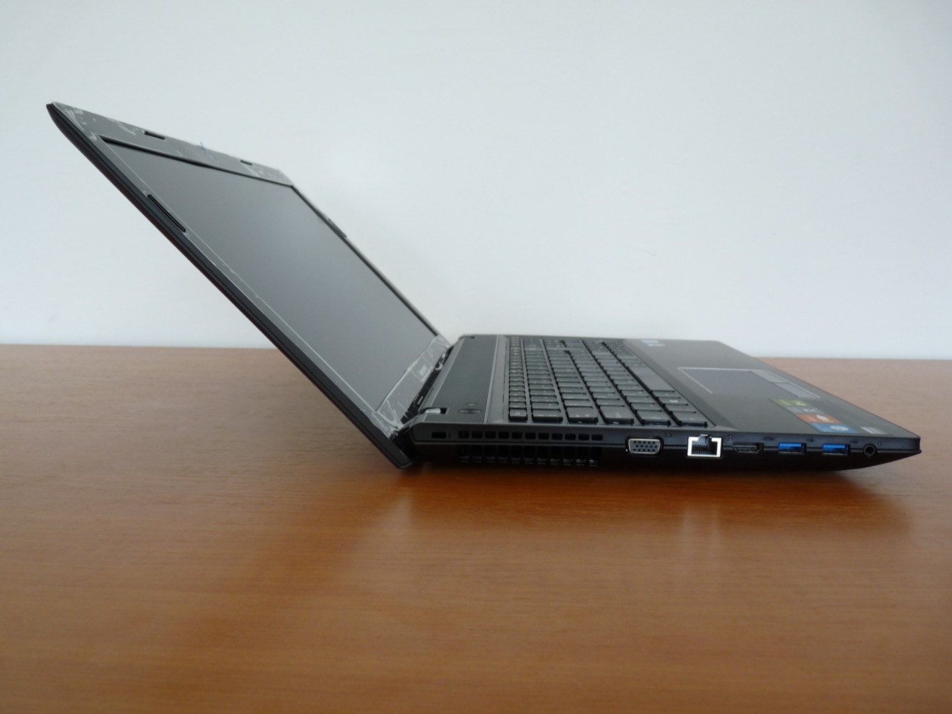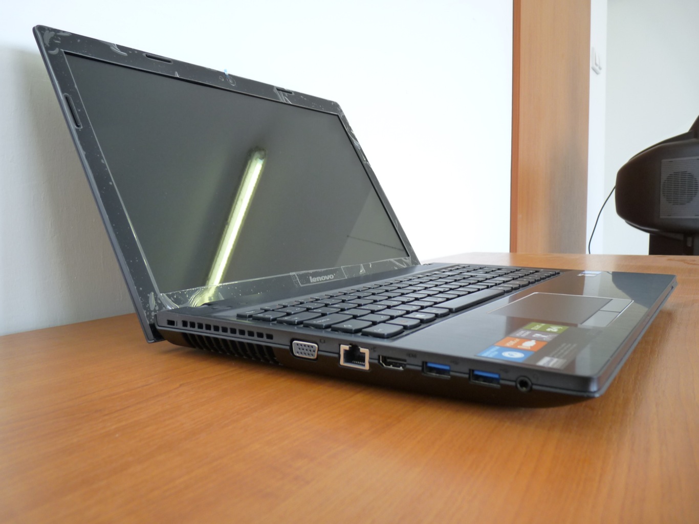A kijelző sajnos nem hozza el ebbe az árkategóriába a megváltást. A 15.6 hüvelykes, 1366x768p felbontással rendelkező kijelző fényes borítást kapott, amit sajnos, ha akarunk se tudunk pozitívan értékelni. A színhűség és a betekintési szögek is csak átlagosnak nevezhetőek, vagyis egy középszintnek megfelelő TN+film technológiás panel tudása tárul elénk, melyet még az a tény is beárnyékol, hogy a tesztelt G500-as rögtön pixelhibával indított. Ezért természetesen még nem kell leírni a noteszgépet, hiszen a pixelhiba viszonylag gyakori jelenség, ráadásul előfordul minden folyadékkristályos technológiát alkalmazó készülék esetében, így TV-nél és telefonnál szintúgy.