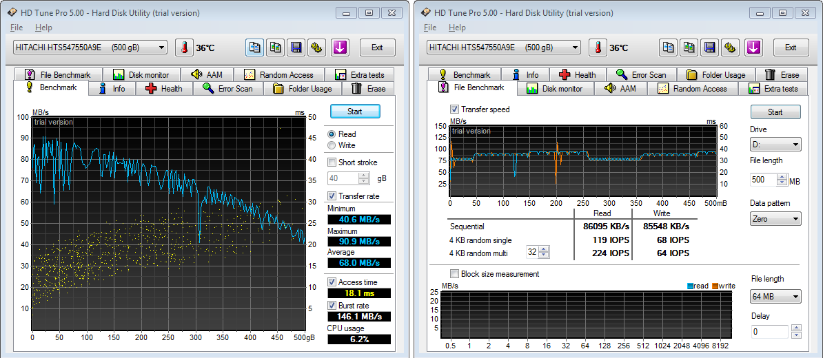 Az Aida64 rendszerstabilitási tesztjével megmértem, hogy a B960-as CPU-ból 100%-os terhelésen mit lehet kihozni. A Maximális 65°C-os hőmérséklet egyáltalán nem számít soknak, sőt inkább kevésnek, de mondjuk egy az IdeaPad Y570-nél megfigyelt hatalmas rézhűtővel és ventilátorral valószínűleg akár 50°C körüli hőmérsékletre is vissza lehetett volna szorítani ezeket az értékeket. A 100%-os terhelés mindössze csak 18db zajszintet eredményezett, ami mondjuk az IdeaPad Y570 esetén 21db-ig is felkúszott.