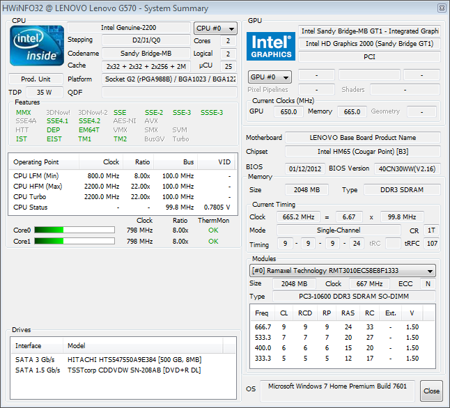 A notebookban Sandy Bridge architektúrás processzor található, melyről már korábban cikkeztünk (KATT), de azok közül is a Pentium B sorozat egyik legerősebb tagja a B960. Mind a Core i processzorok, mind pedig a Pentium B sorozatú processzorok 32 nm-es gyártástechnológiával készülnek. A két CPU között csupán annyi különbség van, hogy míg az Intel Pentium B960 2 fizikai maggal rendelkezik, addig az Intel Core i3 ugyancsak 2 fizikai maggal rendelkezik, de támogatja a Hyper-Threading technológiát, melynek köszönhetően 4 programszál párhuzamos futtatására képes. Azt azért érdemes megemlíteni, hogy átlagfelhasználó nem szokott egyszerre 4 programszálat futtatni, így az fölöslegesnek is nevezhető.