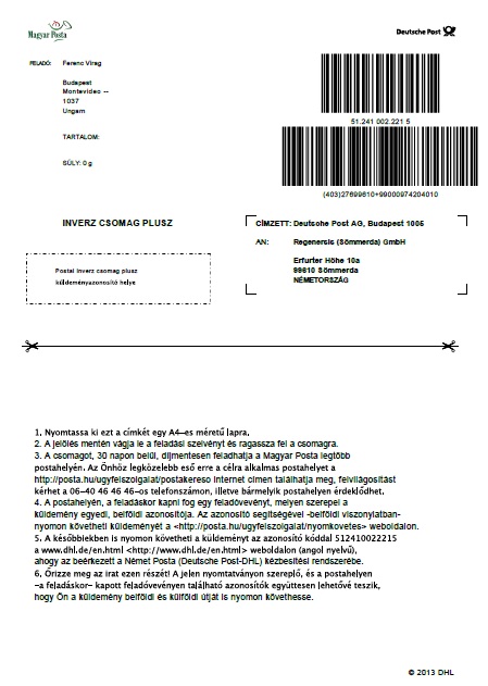 • a call center elküld az ügyfél e-mail címére egy postai feladó lapot (e-mail csatolmány)