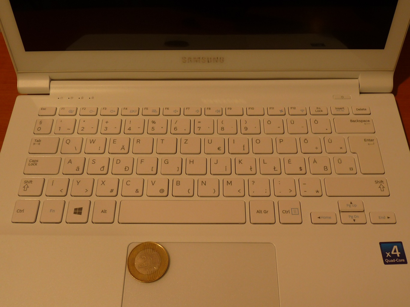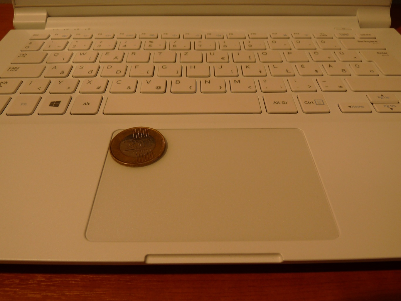 Szerencsére vannak standardok, amiktől eltérni nem érdemes. Ezek a standardok a billentyűzet esetén a jó & kényelmes alátámasztás, jó minőségű gombok, melyek járása halk és közepes úton történik. Tekintve, hogy kifejezetten vékony eszközről van szó az, hogy megfelelő nyomáspontot biztosítsanak az Ativ Book 9 Lite-nak szinte kivitelezhetetlen (komolyabb árkategóriában azért már találunk erre is megoldást). Manapság egyre inkább terjedőben vannak a háttérvilágítással rendelkező billentyűzetek, leginkább azért mert minimális anyagi befektetéssel komoly funkcionalitásbeli előnyökre tehetünk szert. Sajnos ezt a megoldást nem tudhatja magáénak a legolcsóbb Ativ Book, újfent csak a drágább verziók felé kell terelgetni az érdeklődőket, ha elengedhetetlennek érzik a háttér világítással rendelkező billentyűzet meglétét. Sajnos az elégedetlenségem sora itt még nem ér véget, hiszen a készülék mellett maga a billentyűzet is fehér, mely így kifejezetten divatosnak nevezhető, de a későbbiekben nagyobb gondot kell fordítania a tulajdonosnak a tisztán tartásra.
