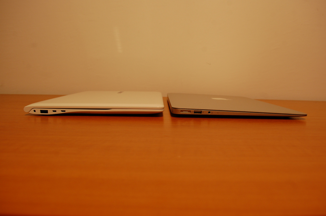Formavilágát tekintve kiköpött Series 9, viszont alumínium helyett műanyag házat kapott így kevésbé masszív elődjéhez képest, ellenben meglepő módon nincsenek illesztési és anyaghasználati problémái. Lentebb kicsit bővebben kerül majd kifejtésre a következő megállapításom: a lakkozott fedéltől eltekintve egészen korrekt noteszgépet vehettem a kezembe. Mosolyogtató a tény, hogy az Apple és a Samsung párharca egy újabb frontot nyitott, hiszen elég ránézni az Ativ Book 9-es sorozatra és mellé tenni egy Macbook Air-t, a hasonlóság rögtön szemet fog szúrni.