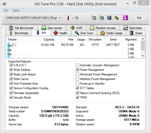 | Merevlemez | Samsung MZMTD 128 GB |