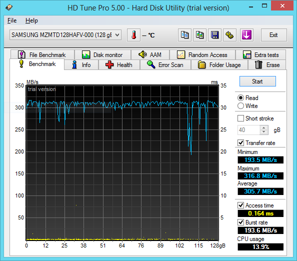 Ebben az esetben sem fogunk meghasonulni magunkkal: egy átlagfelhasználó életét nem az erős processzor beszerzése fogja meggyorsítani, hanem az SSD beépítése/alkalmazása. Szerencsénkre az Ativ Book 9 Lite egy egészen fürge SSD-t kapott, melyet éppen csak, hogy ki tud szolgálni az AMD négymagos erőforrása.