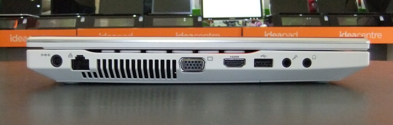 Baloldalról: töltő csatlakozó, lan, hő kivezető nyílás, d-sub, hdmi, 1x usb 2.0, audio ki és bemenet