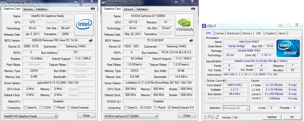 Röviden a processzor 2 fizikai maggal rendelkezik, támogatja a Hyper Threeding technológiát így kétszer annyi szálon fut, mint sima kétmagos társai, valamint rendelkezik egy úgynevezett Intel HD Graphics 3000 integrált VGA-val, mely az NP300V-ben elhelyezett Nvidia TG520MX dedikált VGA-val és az Nivida Optimus technológia segítségével képes automatikusan váltani a videokártyákat annak függvényében, hogy a felhasználónak mire van szüksége. Már az Nvidia Optimus technológiáról is írtunk korábban, melynek működését kielemeztük részletesebben (katt).